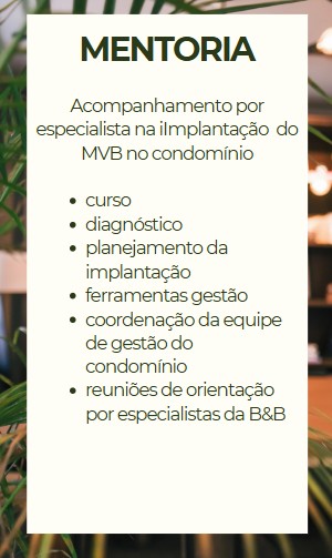 Ideal para quem quer implantar o MVB com acompanhamento de um especialista para planejar e orientar o passo a passo