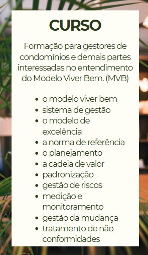 Ideal para quem já tem expertise em Gestão Empresarial e quer aprender o que é o Modelo Viver Bem para melhorar a gestão e o convívio em condomínios