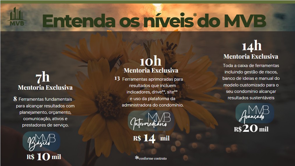 Ideal para quem quer implantar o MVB com acompanhamento de um especialista para planejar e orientar o passo a passo