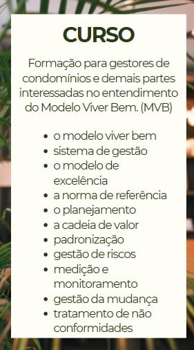 Ideal para quem já tem expertise em Gestão Empresarial e quer aprender o que é o Modelo Viver Bem para melhorar a gestão e o convívio em condomínios